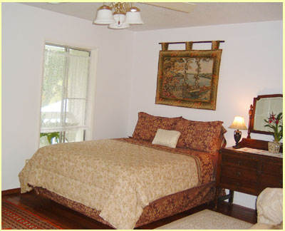 a spacious room, with a queen bed. It opens to a private lanai, with beautiful view to the garden. $170 |