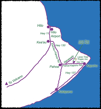 | Directions to Lava Tree Tropic Inn from Hilo Airport |